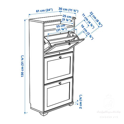 KHAYRUN shoe cabinet with 3 compartments, white, 61x30x130 cm